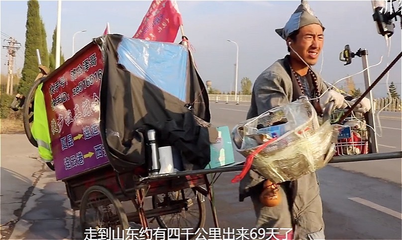Trần Trạch 21 tuổi đã đi bộ vào ngày thứ 69 và đi bộ 4.000 km tổng cộng 7.000 km. Người Sơn Tây nhắm thẳng biển Liên Vân Cảng (Tây An). Anh ta đi khoảng 100 km mỗi ngày.